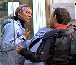 To purchase tickets to Hanoi, Teams have to use a travel agency located in a hotel in downtown Ulaanbaatar. Getting there first, Peter & Sarah wait for the agency to open its doors at 9am and soon had the company of models Tyler & James, father and daughter Duke & Lauren, boyfriends Tom & Terry, beauty queens Dustin & Kandice, and coalminer and wife David & Mary. With only four agents available, everyone agrees that forming a line based on order of arrival would be the only fair way. When the doors open however, boyfriends Tom & Terry walk past an available agent, so the beauty queens Dustin & Kandice decide to step up to the counter. Realizing they had been skipped past, the boyfriends begin to argue with the beauty queens accusing them of cutting lines. A disappointed Tom told them, "I thought we could trust you guys." Afterwards, Tom quipped to Terry, "They are not going to win a beauty pageant of kindness. That is for sure." On the situation, James noted, "The blondes are conniving. They're always looking for any little inch they can get on anybody else." Defending themselves, Dustin later said, "We really didn't feel guilty because we were on the ball and doing our stuff." In the end, the maneuver didn't pay off for the beauty queens as all nine Teams made the same flight to Hanoi.