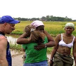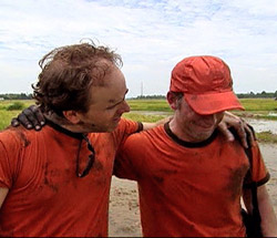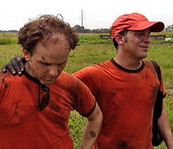 After friends Peter & Sarah came from behind to claim fifth place, two Teams who have become friends along the way, David & Mary and Lyn & Karlyn, find themselves having to square off in a race through the rice paddy. With Mary's bad ankle, she tells the single moms to keep going without her even though Lyn later remarks, "I am not a fair-weather friend. We always keep working with our friends." After Lyn & Karlyn and David & Mary nabb sixth and seventh place respectively, the two Teams hug and Karlyn and Mary cried out of exhaustion and relief. Lyn says, of the coal miner and his wife, "I just didn't want them to go home because they're such deserving people." Mary adds, "We have three great groups of friends: Lyn & Karlyn, the Cho brothers, and TNT. We're the backpack. We don't give up on each other. We encourage each other."