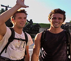 At the airport, Tyler lost his cool when he realized the earliest flight to Kiev didn't depart until 8:25am the next morning, landing at 1:35pm. When James suggested that Tyler let the anger go, he sniped, "We bust our ass all day long and have nothing out of it? It pisses me off." After settling down, he and James purchased tickets for the flight along with their constant shadow from the previous leg, beauty queens Dustin & Kandice. On the models, Dustin commented, "It's kind of a love, hate thing with the boys. We can't afford to spend time with them on the race. Ultimately, we have to break away from the boys, because if we stay with them, they're going to out kick us in the end."
