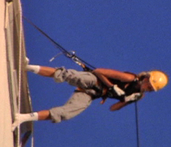 With the Cho brothers, Lyn & Karlyn, and Rob & Kimberly descending upon the tower, beauty queens Dustin & Kandice showed signs of trepidation, but rappelled down the building before the other Teams arrived. In the three-way race for last, single moms Lyn & Karlyn surged ahead, leaving their acrophobic alliance partners, Erwin & Godwin, behind at the tower. Karlyn later remarked, "We still have an alliance with the Cho brothers as far as sharing information, but we're all just gonna run for it right now. However it works out, that's how it works out."