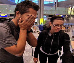 Arriving at the airport in third place, dating couple Rob & Kimberly, found the flight through Vienna was sold out, and had to find a different flight to Kiev via Warsaw that landed at the same time. Since the ticketing counter was closed for the evening, they booked that flight at 6:00am the next morning along with single moms Lyn & Karlyn and the Cho brothers. While the three Teams initially felt relief to be landing at the same time in Kiev as the models and beauty queens, they ultimately became very concerned when their connecting flight in Warsaw was delayed thirty minutes, putting them again in last place together.