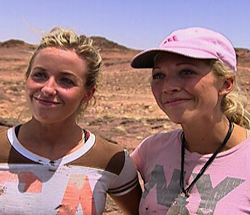 BLONDE AMBITION Although the beauty queens had an opportunity to catch up when Rob & Kimberly couldn't find Phil in the barren desert, the dating couple eventually stepped onto the mat in third place. Arriving in last place, the beauty queens made the dreaded run to the mat as Dustin said, "I feel so numb. I don't even feel like crying."