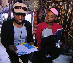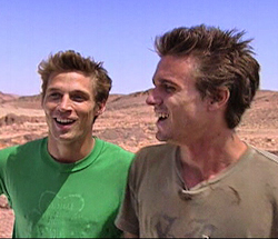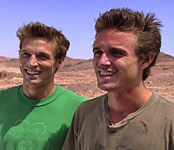 ON TOP AGAIN As Rob & Kimberly completed grinding olives with Dustin & Kandice still behind, Tyler & James pulled into the Berber camp in first place. As they prematurely celebrated another victory during their run to the mat, James realized that they forgot the good luck charm. As the models ran back to the car, Lyn & Karlyn pulled into the camp and a footrace ensued. While the single moms put up a good fight, models Tyler & James sealed another victory and, when their charm matched the charm of the greeter, they received the good news from Phil they both won a Sprint Treo 700P and a year's worth of service.
