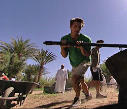 Initially, Tyler & James opted to throw pots, but changed their mind for the same reason as Dustin & Kandice: traveling back to the familiar city of Ouarzazate. While the beauty queens proceeded to blow past the still stranded Rob & Kimberly and enraging Rob in the process, Tyler & James stopped long enough to tell them where the next clue would be waiting for them. With Lyn & Karlyn passing them also on the way to grind olives, Rob & Kimberly finally got their tire fixed after a local stopped to help them.