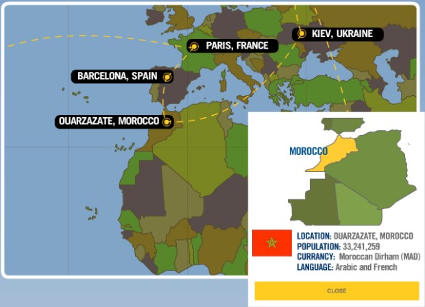 Morocco, Africa's Western Kingdom, is a country rich in culture and history with both Arab and European influences. One of Morocco's main attractions is the Sahara Desert, the world's largest hot desert that is nearly as large as The United States. Ouarzazate is located in the southeast region of the country over 300 miles from Casablanca, the country's largest city and economic capital. Ouarzazate (pronounced war-zā-zāt) means without noise in Arabic, and is oftentimes referred to as the door of the desert as the city is considered to be the core of the Sahara's tourism industry.