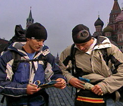 PLANES, TRAINS AND AUTOMOBILES After receiving the next clue from Phil in Moscow, friends Eric & Jeremy opened it to discover they had to fly over 1,000 miles to Frankfurt, Germany and then 100 miles by train to the town of Stuttgart to find the world’s flagship Mercedes-Benz factory. In a taxi on the way to the airport, Jeremy lamented, “That would have been a prime spot to be holding hands with the chicks.” Close behind in another taxi, a surprised Michelle marveled, “We ran across Red Square. No one we know could ever say that.”