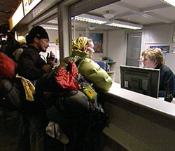 While Lake & Michelle waited to leave Moscow, the remaining seven Teams began collecting at the airport, including last place dating couple Dave & Lori who breathed a huge sigh of relief to get a clue from Phil instead of their walking papers. With limited space available on the Aeroflot flight, the Teams all waited at assorted windows for the ticketing to reopen after a computer breakdown. Best friends BJ & Tyler caught a lucky break when the window they stood next to opened first, giving them the edge and the last tickets on the flight. The remaining Teams would have to wait until morning to take a flight out at 7 am.