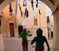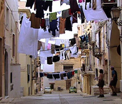 CLOTHING OPTIONAL Arriving at Castellammare del Golfo in first place, best friends BJ & Tyler found a Detour. In this Detour, Teams had to choose between Foundry and Laundry. In Foundry, Teams had to walk to a nearby metal works and pick up a 110-pound church bell. Then, using a vehicle known as an Ape, they must drive the bell to a church, Chiesa Maria, and hand deliver it up a set of steps. In Laundry, Teams needed to find an intersection littered with laundry lines and search among 2,400 pieces of laundry to find one of 16 items of clothing marked with a red and yellow tag.