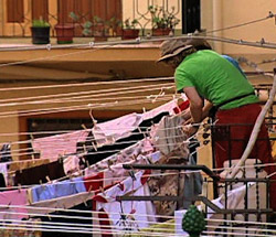 Laundry: In Laundry, Teams needed to find an intersection littered with laundry lines and search among 2,400 pieces of laundry to find one of 16 items of clothing marked with a red and yellow tag. BJ & Tyler, Eric & Jeremy, Fran & Barry, Lake & Michelle, Danielle & Dani and Dave & Lori sifted through laundry.