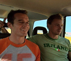 As Eric & Jeremy pulled up to the Teatro di Segesta, Tyler realized that his statue contained two extra pieces, thus completing the task. Opening their clue, the best friends discovered they had to run downhill one mile on foot to the Tempio di Segesta, a temple built in fifth century B.C. and the Pit Stop for this leg of the Race. Stepping onto the mat in first place, an excited BJ & Tyler gladly accepted a digital imaging package from Duracell, complete with a digital camera, photo printer, computer, and Duracell PowerPix batteries for their victory. Finishing in second place, disappointed friends Eric & Jeremy told Phil they made too many mistakes today.