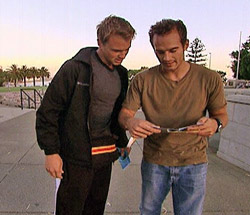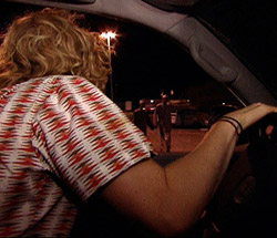 The financial hardship of penniless and last place BJ & Tyler became a hot topic as the other four Teams left the Pit Start. While married couple Fran & Barry didn’t hesitate for a moment to throw twenty dollars into the driver’s seat of BJ & Tyler’s car, dating couple Joseph & Monica balked at the idea, joking, “Those guys are screwed. I love it. I’ll just be happy when the hippies are gone.” Dating couple Ray & Yolanda also showed some compassion by leaving money, but friends Eric & Jeremy simply left an IOU for 100 dollars, saying, “They’re hippies. They’ll find out how to make gas from trees out here. I don’t understand why people give them money. It’s dumb.”