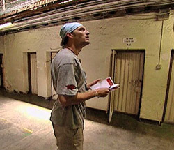PRISON BREAK After the ferry docked, friends Eric & Jeremy took a jog through Fremantle and arrived at the prison in first place. Opening their clue, the pair encountered a Roadblock. In this Roadblock, one Team member had to search the prison block for several cells within Division 4 that contained Duracell coppertop batteries and a flashlight. Then, after finding an entrance to a darkened cavern, they had to descend deep into the ground and search a set of wet or dry tunnels to find their next clue.