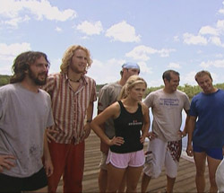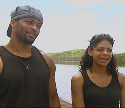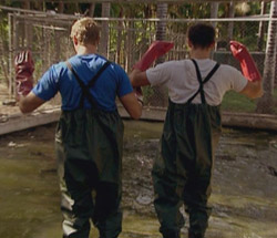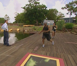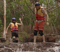 Wet: In the Australian Outback, Teams needed to drive six miles to a roadside park to hike and swim down a daunting one-mile course along a jungle river inhabited by large spiders and poisonous plants. BJ & Tyler and Eric & Jeremy got all wet.