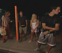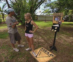 AS PROMISED With all four Teams on the road to Batchelor, the race to the Yield mat meant the difference between first and last. Dating couple Joseph & Monica, knowing that BJ & Tyler planned to Yield them, made a pass on the road and pulled in to the airfield ahead of the best friends. However, right on their heels, BJ & Tyler parked their car in a better position, beat Joseph & Monica in a footrace to the mat, and did exactly what they promised in Yielding the dating couple. An upset Joseph told them, “All right, get off so we can flip it. Come on.”