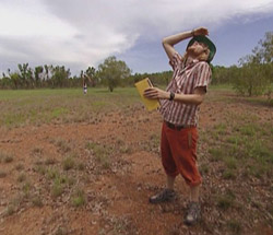 Dry: In Dry, Teams had to drive six miles to an intersection and another six miles off road until they came to a natural rock formation known as the Lost City. Once there, they needed to choose an Aboriginal instrument known as a didgeridoo and, following the sound of music in the air, locate a nearby Aboriginal. The pattern on his didgeridoo had to match the pattern on the Team’s didgeridoo. If it matched, the Aboriginal would teach each Team member how to play a note on it. Once each Team member played a note successfully, they received their next clue. Ray & Yolanda and Joseph & Monica made music with an Aboriginal.