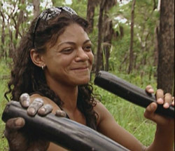 INTO THE WOODS Arriving at the termite mounds, BJ & Tyler opened their clue to find a Detour. In this Detour, Teams had to choose between Wet and Dry. In Wet, Teams needed to drive six miles to a roadside park to hike and swim down a daunting one-mile course down a jungle river inhabited by large spiders and poison plants. In Dry, Teams had to drive six miles to an intersection and another six miles off road until they come to a natural rock formation known as the Lost City. Once there, they needed to choose an Aboriginal instrument known as a didgeridoo and, following the sound of music in the air, locate a nearby Aboriginal. The pattern on his didgeridoo must match the pattern on the Team’s didgeridoo. If it matches, the Aboriginal would teach each team member how to play a note on it. Once each team member played a note successfully, they would receive their next clue.