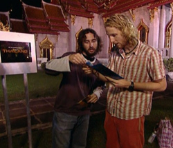 Confident due to Tyler's previous visits to Japan and his ability to speak Japanese, BJ & Tyler strolled into the Bangkok Airport thinking a Japanese airline could get them there the fastest. However, Ray & Yolanda and Eric & Jeremy secured tickets on the earliest United Airlines flight landing at 2:15 pm while BJ & Tyler wasted time at the Japanese airlines. This cost them dearly when they discovered the United flight was completely booked forcing them to settle for a flight landing at 4 pm.