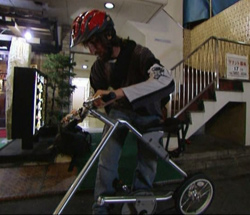 Messenger: In Messenger, Teams had to travel on foot 200 yards to a parking lot where they picked up a pair of folding bikes and two messenger bags, each containing a parcel. Then, after assembling the bikes, they had to ride through the chaotic Tokyo traffic to deliver the packages to two separate buildings listed on each parcel. BJ & Tyler delivered parcels.