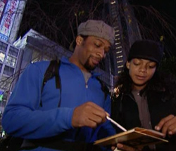 When the gate opened, the three Teams each ran to one of the very large elephants that had a T-Mobile Sidekick in its trunk. Reading the clue on the Sidekick, the Teams learned they had to fly over 7,000 miles to Tokyo, Japan. Once there, they had to drive themselves to Shibuya, Tokyo's version of Times Square and the world's busiest intersection. Then, they had to scan the many big screen TVs for the one flashing a hint of the location of their next clue.