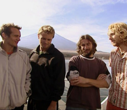 SWAN LAKE Like so many legs before, the Hippies and Frat Boys arrived together at Lake Yamanaka resulting in perhaps the silliest race to the Pit Stop ever as both Teams jumped in giant swan boats and began pedaling to Phil. While believing they had a distinct physical advantage, Eric & Jeremy actually fell behind on the lake while BJ & Tyler pedaled furiously to earn a first place victory. For their win, BJ & Tyler each won a T-Mobile Sidekick along with three years of free service. Standing in second place, Jeremy let it be known that he didn't appreciate Tyler's deception at the Roadblock. "The last leg, it's on," promised Jeremy. After another day of wrong directions and bickering, dating couple Ray & Yolanda stepped on the mat in last place losing all of their money and possessions. Still optimistic, Ray told Phil, "We're gonna win the money. We'll have that million dollar check."