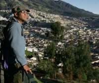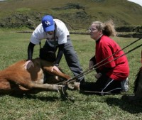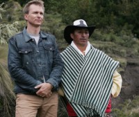Employing the services of a taxi driver who led them out of Quito to the northern entrance of Cotopaxi National Park, newlyweds Rob & Amber drove through the rugged but beautiful terrain to Hacienda Yanahurco where they encountered the first Detour of the race. They had to choose between Wrangle It and Recover It. In Wrangle It, teams had to help local cowboys to lasso, tie down and groom one wild horse whose hooves have grown so long that they cannot walk properly. Team members had to use traditional tools to clip its hooves to a safe length, and to trim its mane and tail. When they set the horse free, they would receive their next clue. In Recover It, one Team member had to put on an historical military uniform. Then, the team must search the field for three items missing from the uniform: an epaulette, a button and a sword. Once done, a general would hand them their next clue.