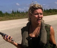 Dustin suited up in her military gear, grabbed her GPS device and began walking along the base in search of one of the four officers. Following the arrow on the GPS, she likened the mission to "searching for your Easter basket." Soon, Danielle and Charla joined Dustin in the search as a lost Oswald & Danny found directions to the base. After Dustin located her pilot and started walking to the clearing, Danielle couldn't locate hers even though the GPS told her he was directly in front of her. She couldn't see him in the dense brush and kept walking past, but eventually she found her man and headed to the clearing as well. Meanwhile, poor Charla didn't know how to operate the GPS device very well allowing Oswald, who finally began the task, an opportunity to catch up.