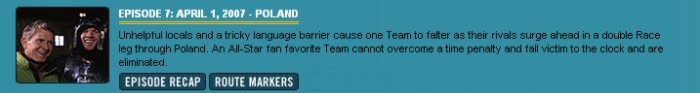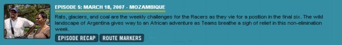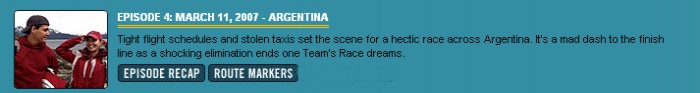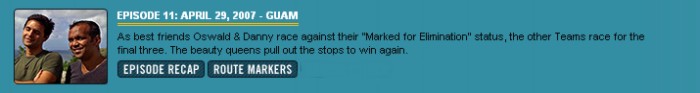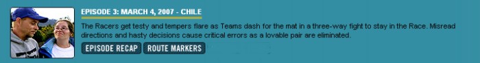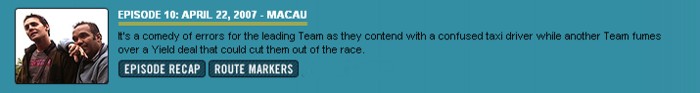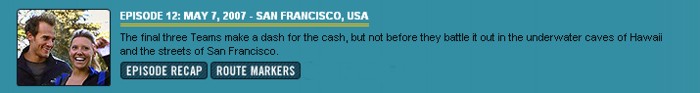 All THE AMAZING RACE related graphics and photos on this page are copyright 2007 CBS Broadcasting Inc.This website IS NOT affiliated with the CBS Broadcasting Inc.
